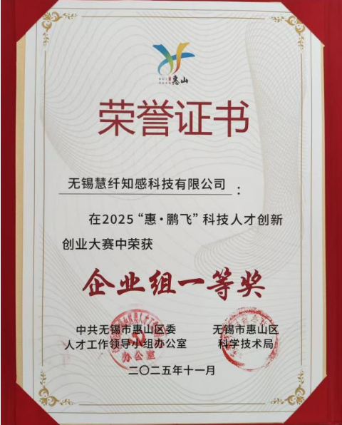 2025年11月20日,2025“惠·鵬飛”科技人才創新創業大賽總決賽暨頒獎儀式隆重舉行。經過與眾多科技企業的激烈角逐,無錫慧纖知感科技有限公司憑借卓越的創新實力與廣闊的商業前景脫穎而出,一舉奪得企業組一等獎。